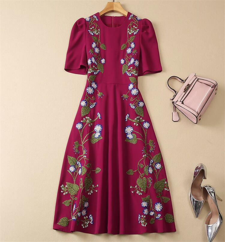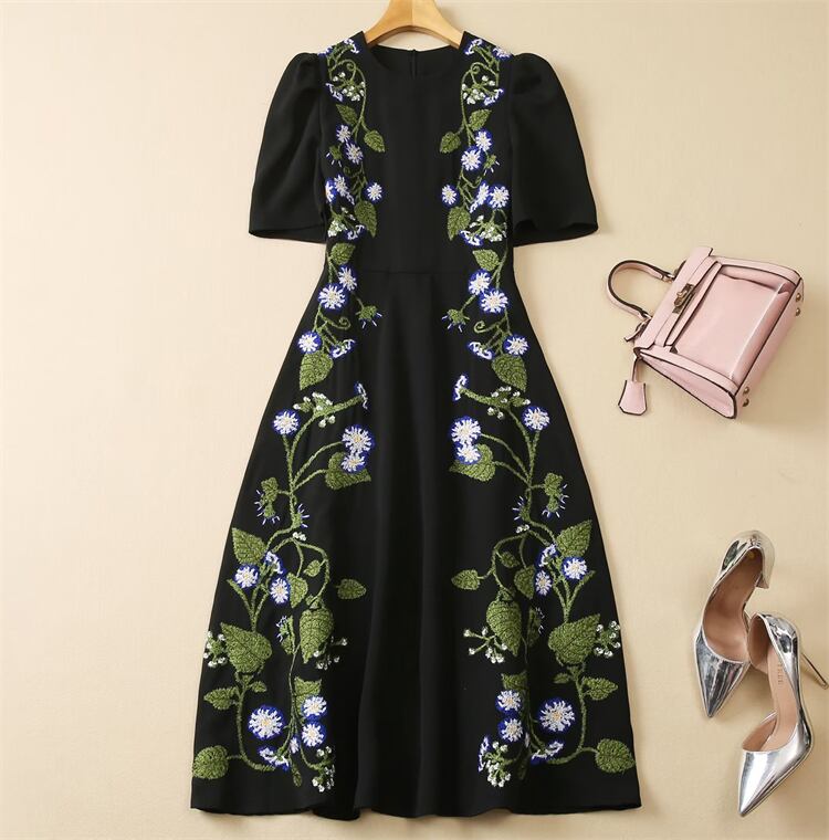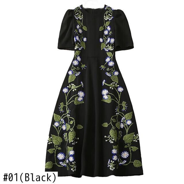 夏ブラックワインレッド刺繍セレブパーティーミディドレス サマー 夏物