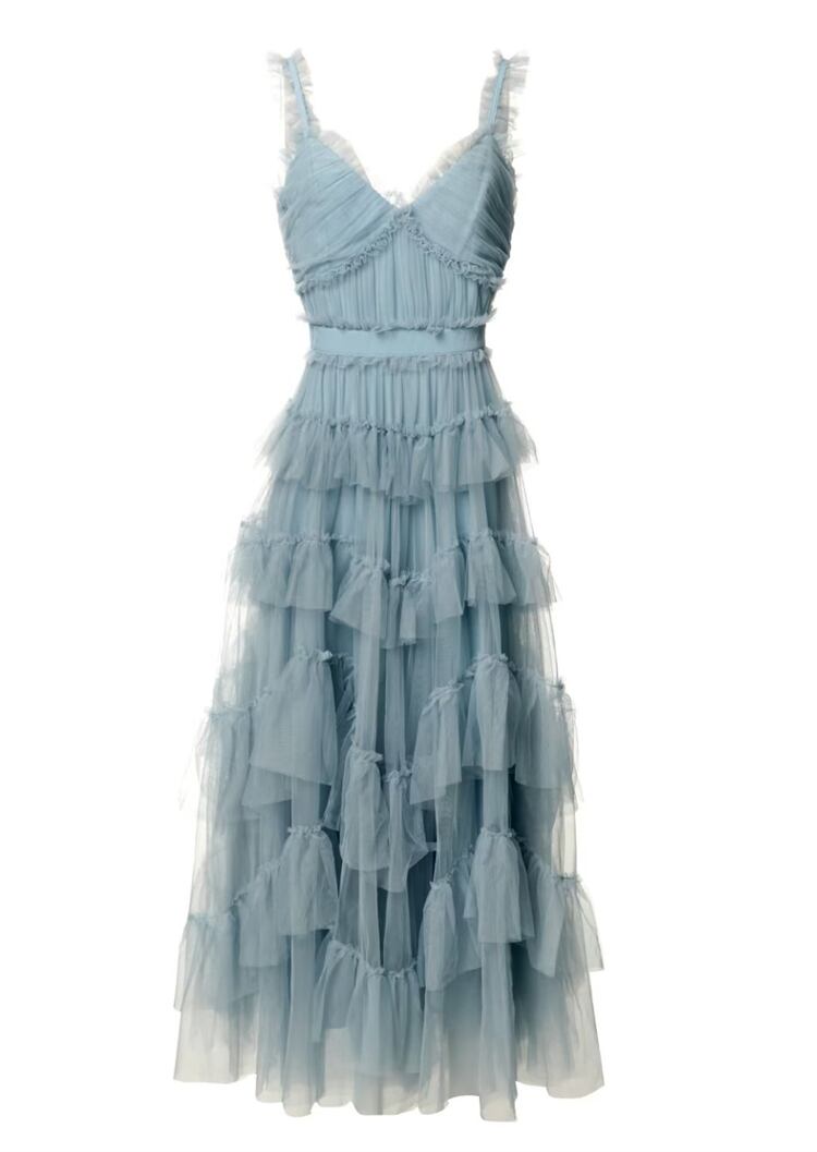 夏メッシュピンクブルーセクシースリム気質高級ロングキャミソールストラップミディドレス サマー 夏物
