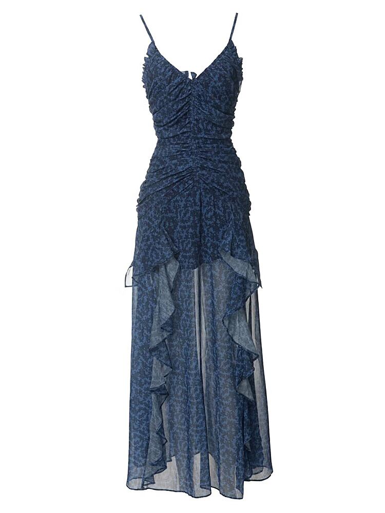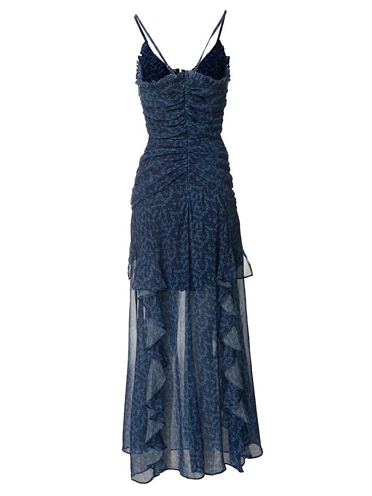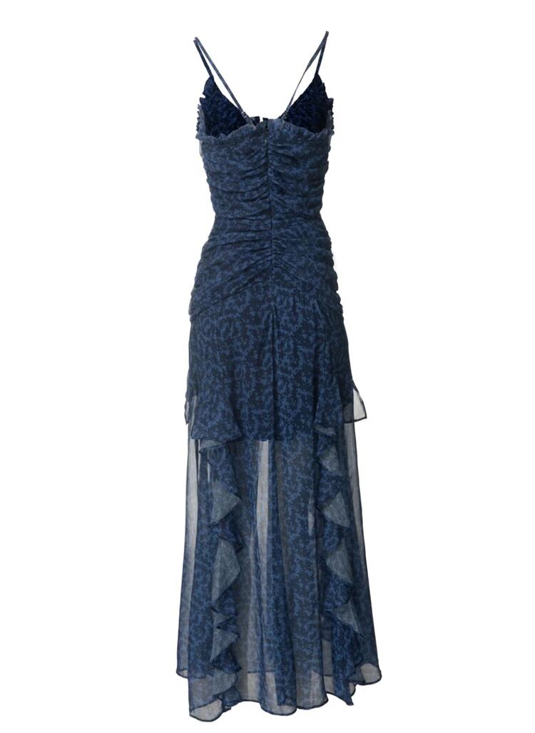 夏ヒョウ柄シックシフォンパーティーセクシー滑走路ロングストラップミディドレス サマー 夏物 長めのストラップ