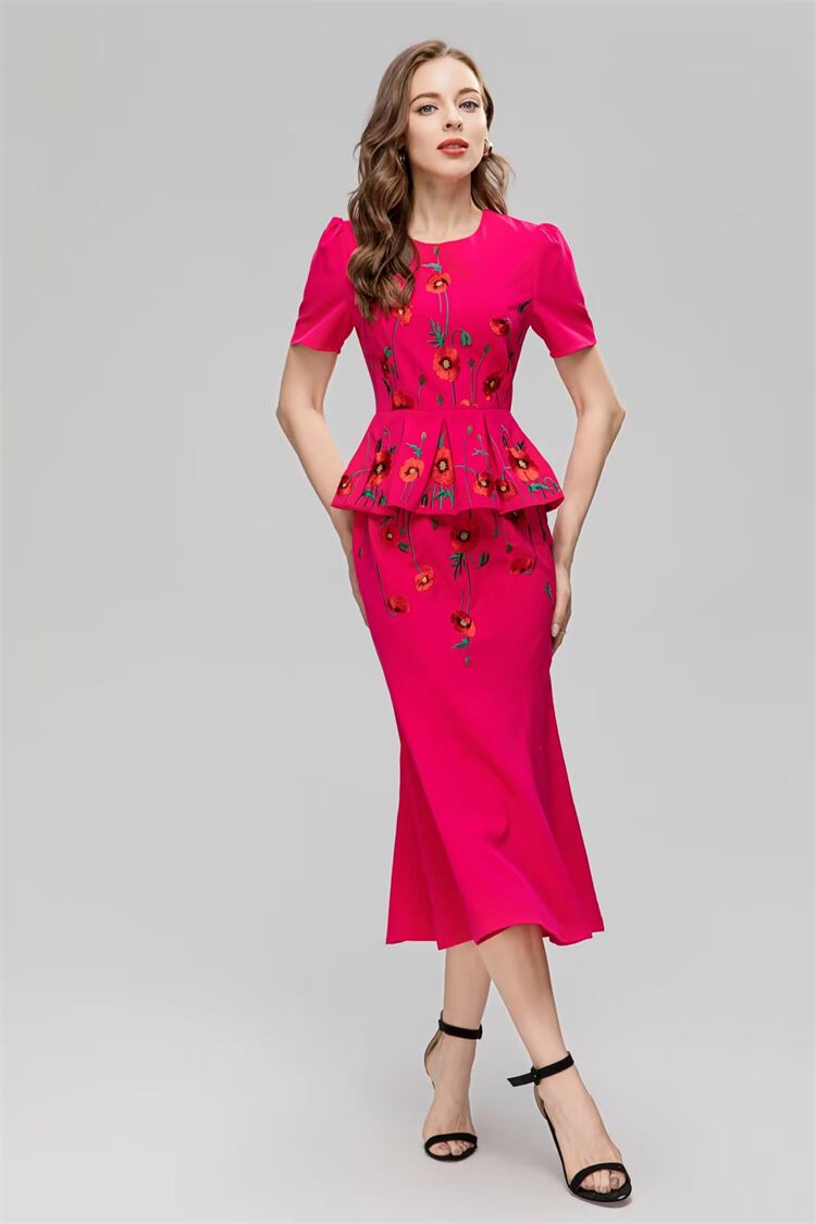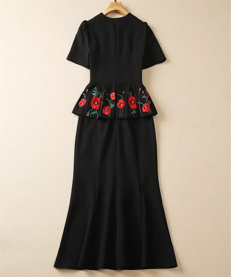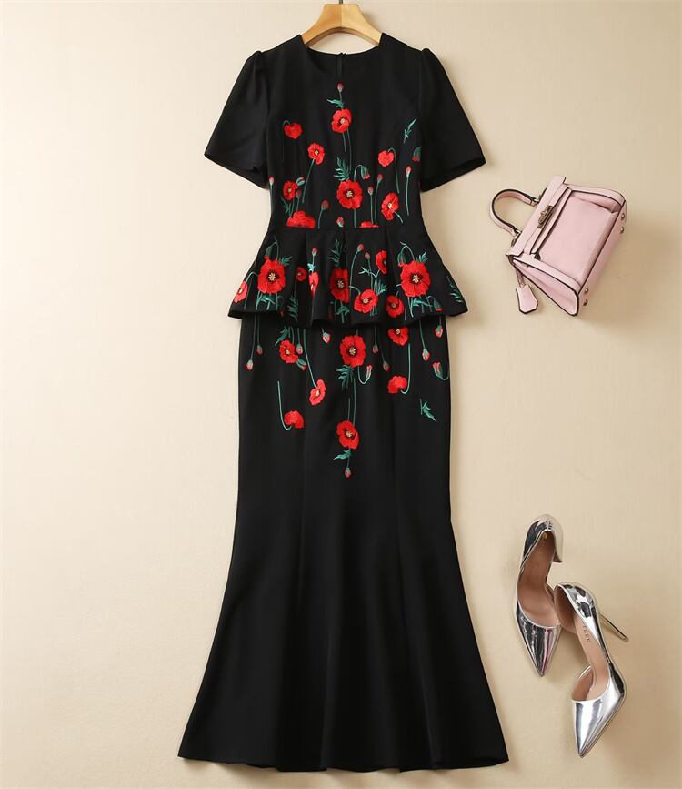 夏刺繍入りブラックレッドセクシーシックパーティー職場滑走路マーメイドペンシルドレス レース サマー 夏物