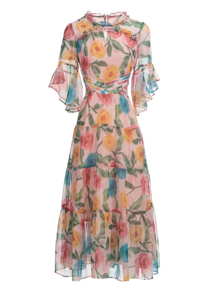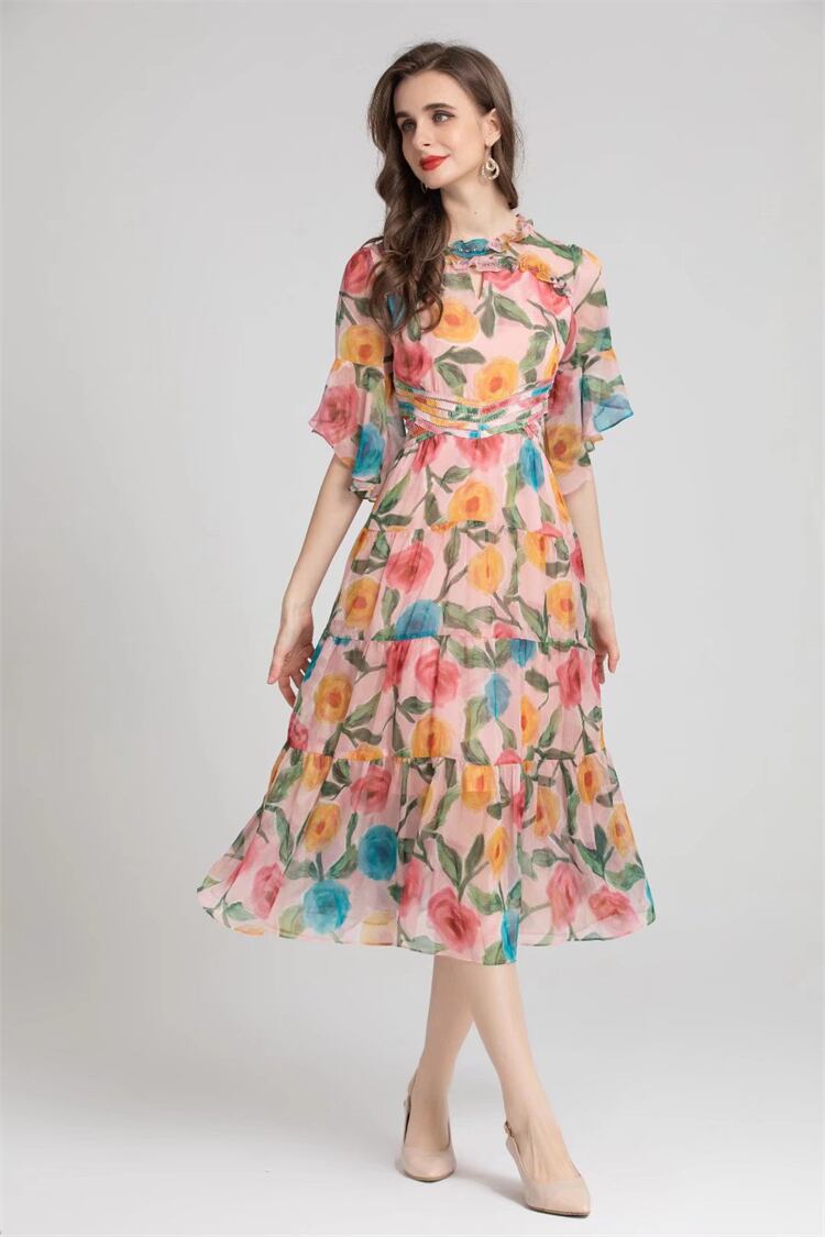 サマービーチボヘミアンプリントユニークスリムシック女子セクシーホリデーミディドレス 夏物