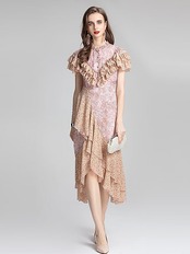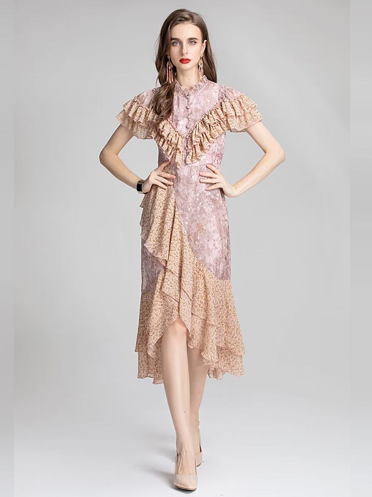 夏印刷不規則ホリデースリムラグジュアリー滑走路人魚セクシーパーティーラグジュアリーミディドレス プリント サマー 夏物