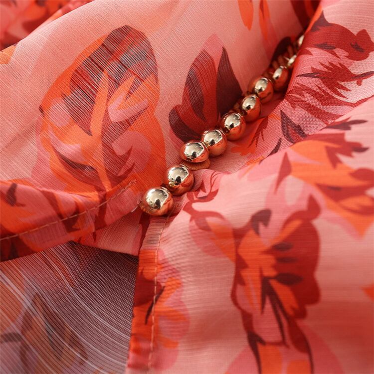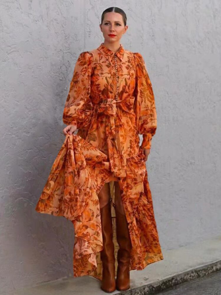 滑走路ビーチ春秋プリント長袖ボタンホリデーパーティーミディドレス ロング スプリング 春物 オータム 秋物