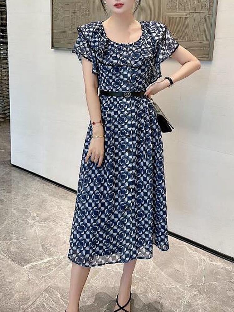 ドレス 夏 プリント ボヘミアン グリーン ブルー パーティー セレブ 滑走路 スリム ミディドレス サマー 夏物
