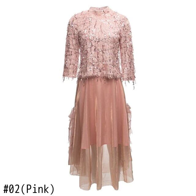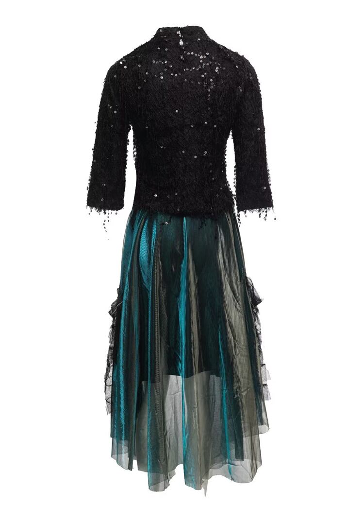 ツーピースセット秋テルスパンコールブラックトップメッシュハーフスカートシックスリムレディースセット オータム 秋物