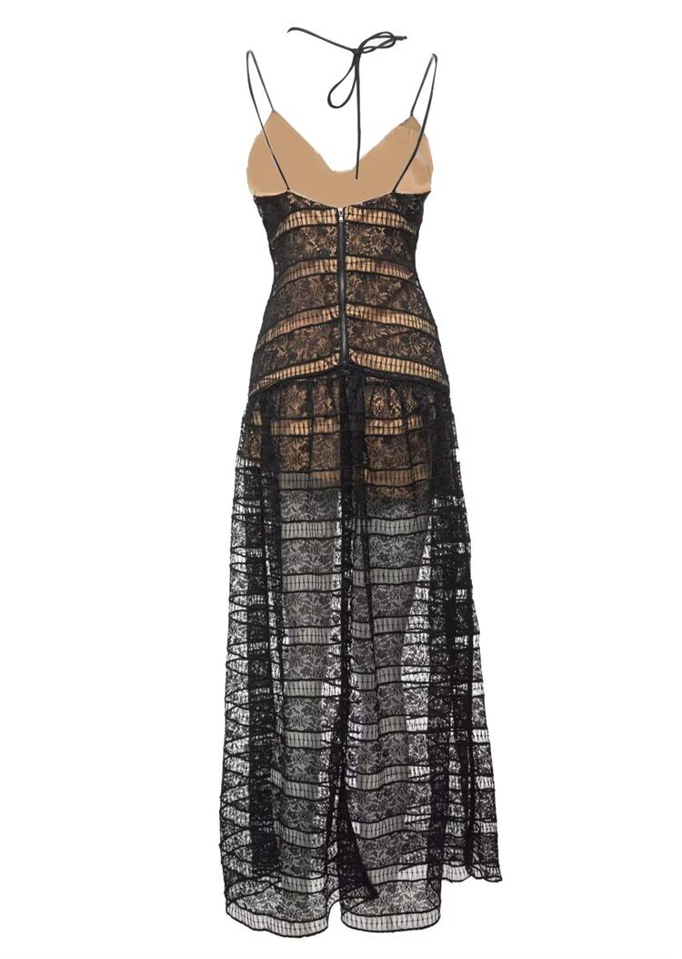 夏黒レース刺繍セクシー中空セクシー女子シックキャミソールストラップロングドレス レッド ブラック サマー 夏物