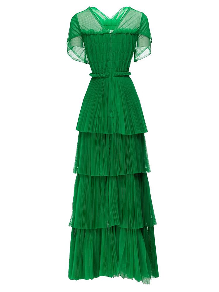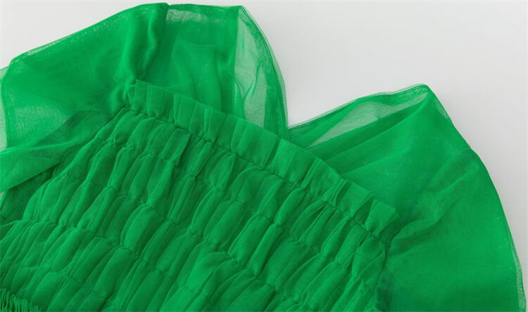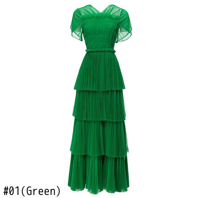 高級サマーパーティーセクシーグリーンプリーツケーキトップスオフィスガールズロングドレス 夏物 会社 学校 通勤や通学にも