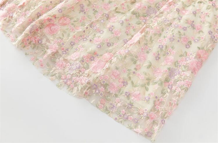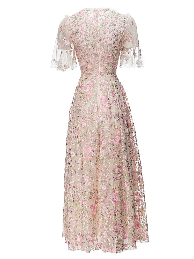 高級サマーパーティーメッシュ刺繍ピンクガールズゴージャスシックロングドレス レッド 夏物