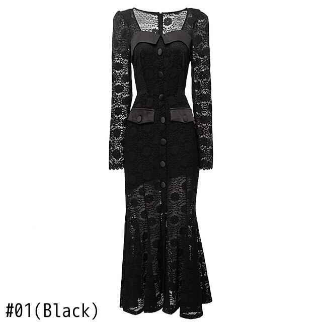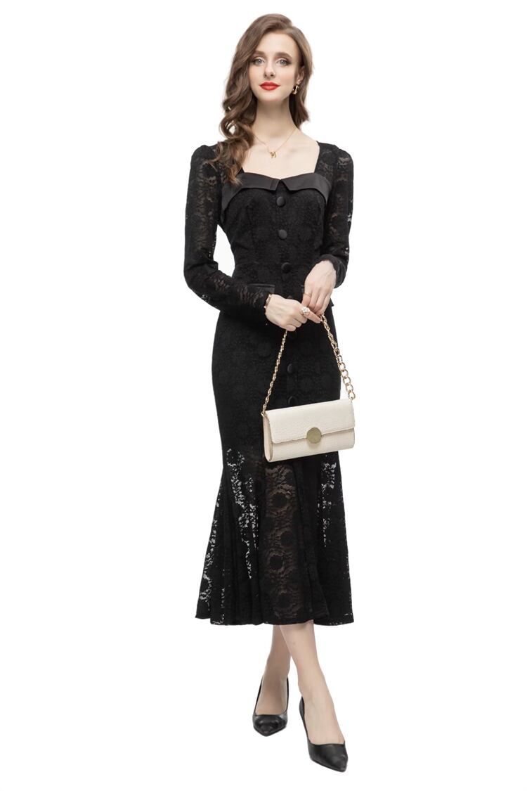 春秋パーティーブラックレース中空アウトシックセクシーオフィスペンシルマーメイドミディドレス スプリング 春物 オータム 秋物 会社 学校 通勤や通学にも