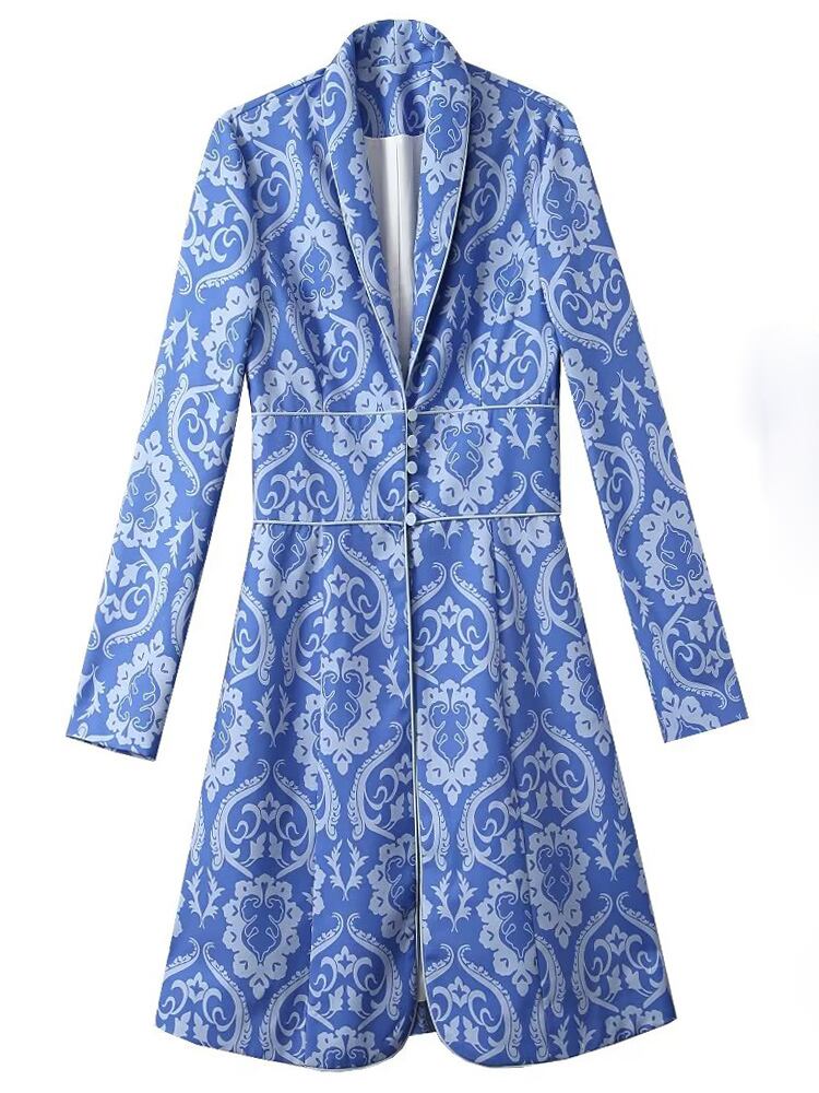 ケイト・ミドルトン 春秋パーティー ブルー プリント セレブ紳士ミディ ドレス スプリング 春物 オータム 秋物