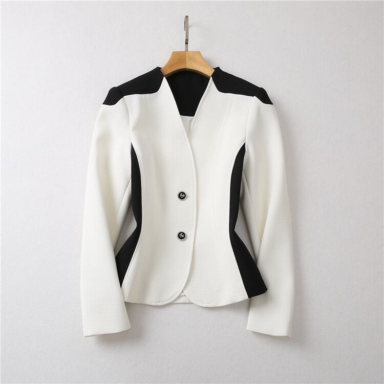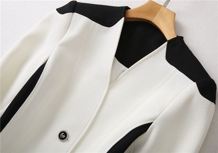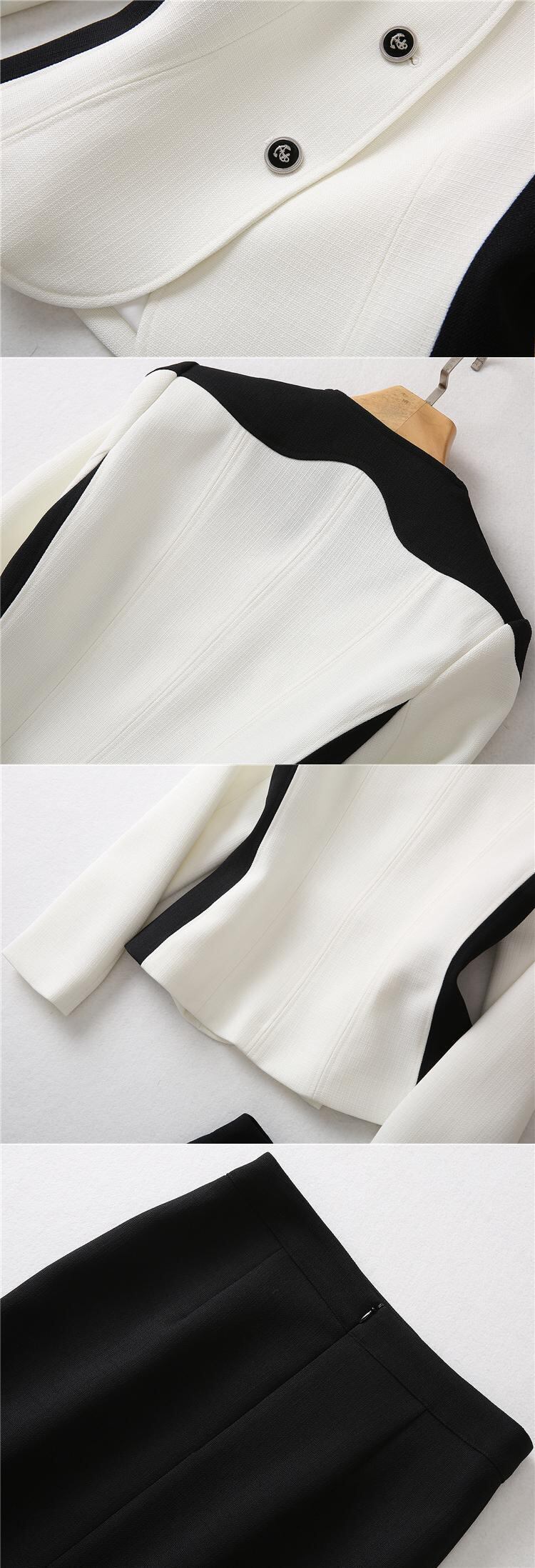 秋白ジャケットトップ黒ペンシルハーフスカートセレブオフィスレディースセット ホワイト ブラック オータム 秋物 会社 学校 通勤や通学にも