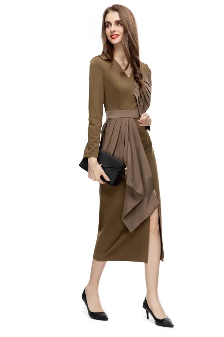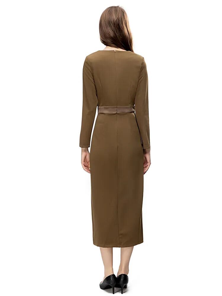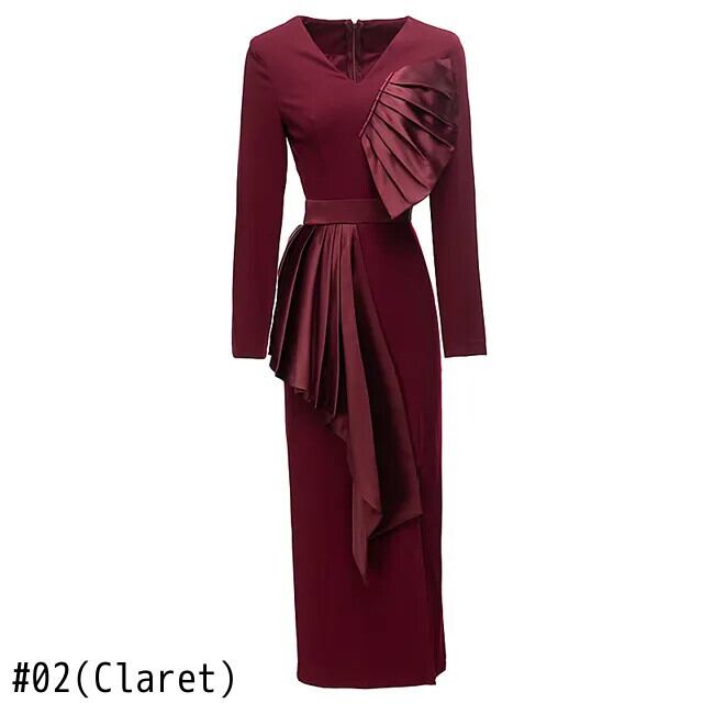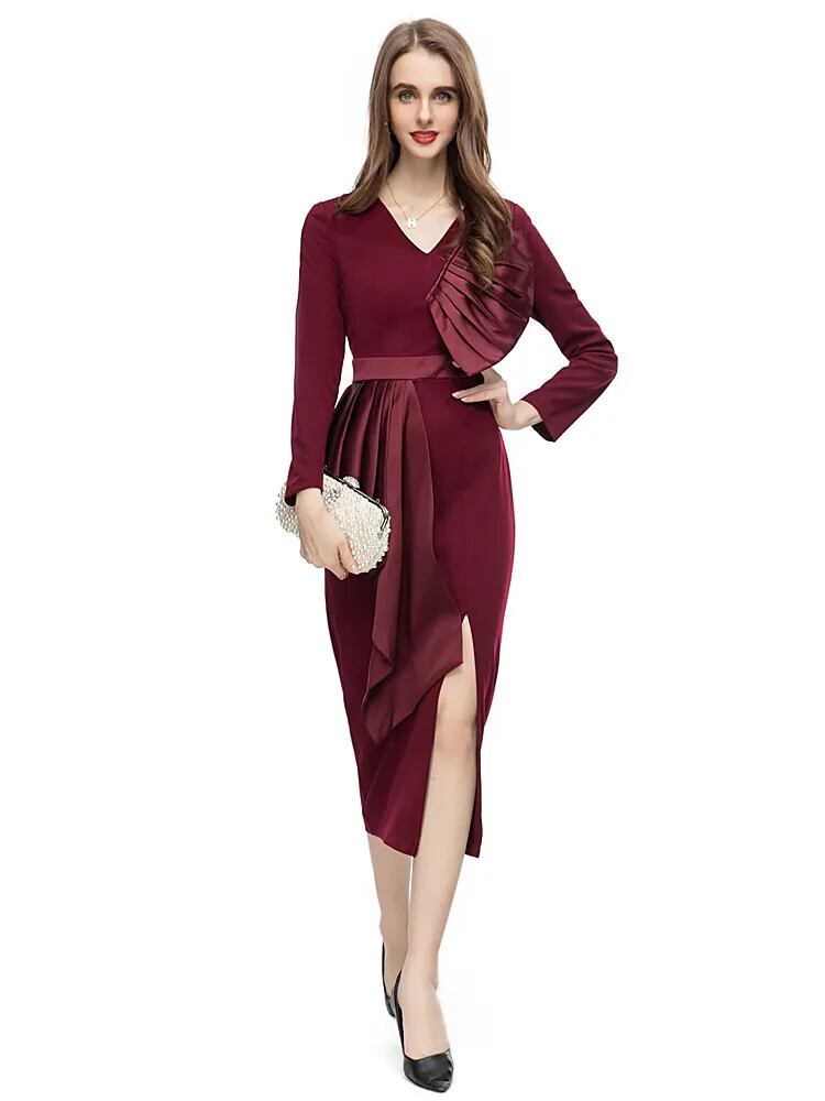 ドレス 春秋 パーティー ワインレッド ユニークスリム セクシー シック ペンシル ミディドレス スプリング 春物 オータム 秋物