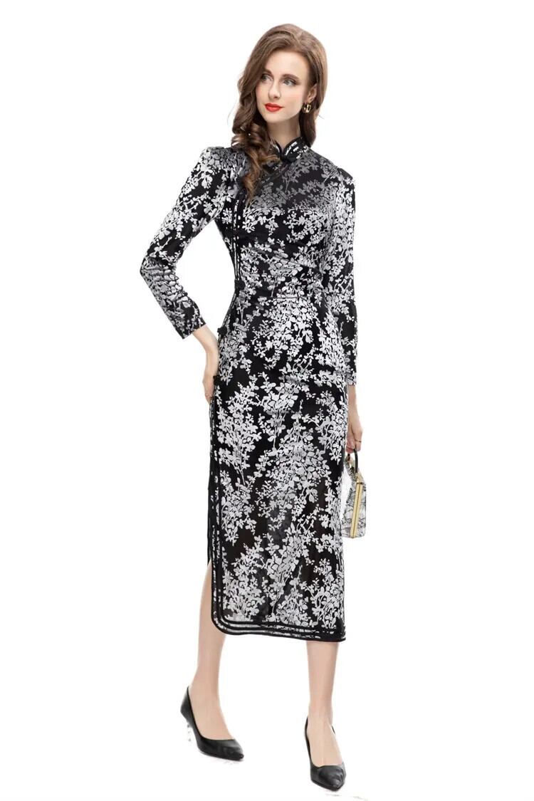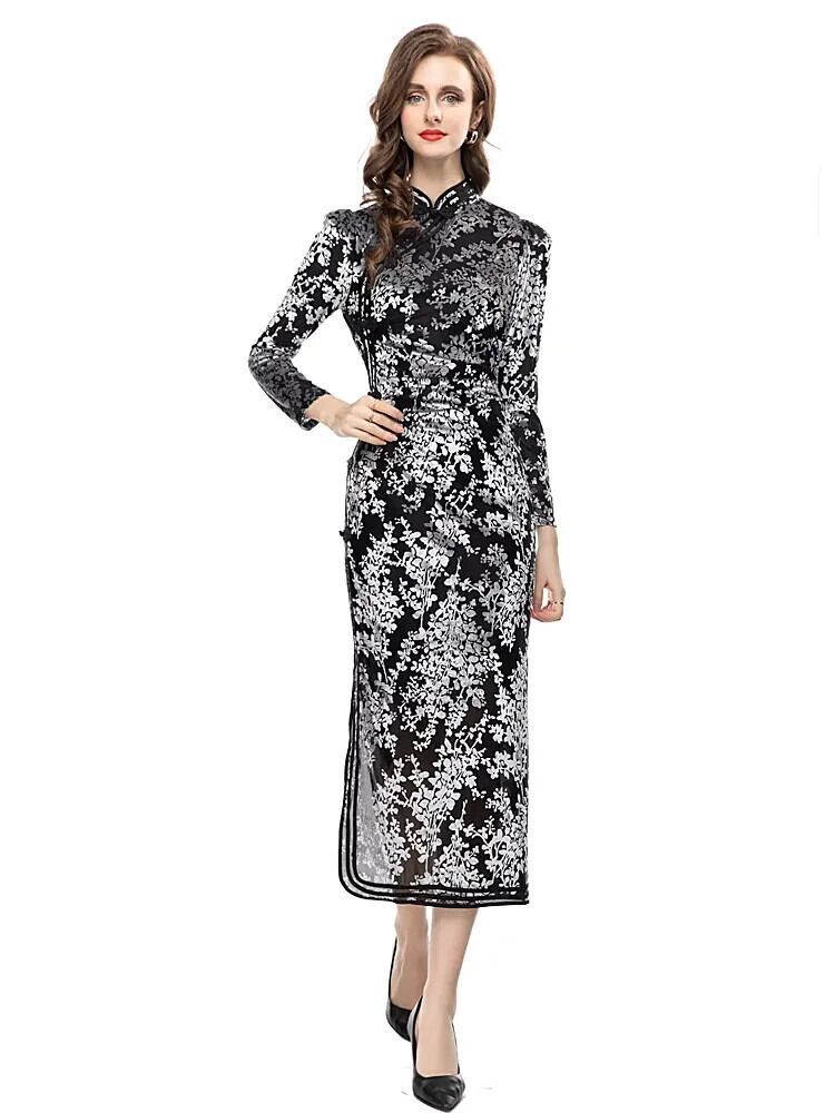 ドレス春秋パーティーパープルブラック刺繍スリムセクシーシックペンシルミディドレス レッド スプリング 春物 オータム 秋物