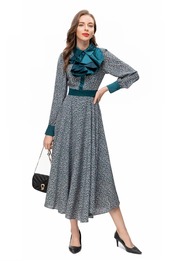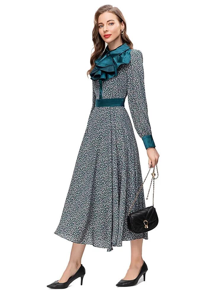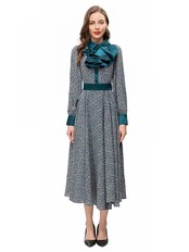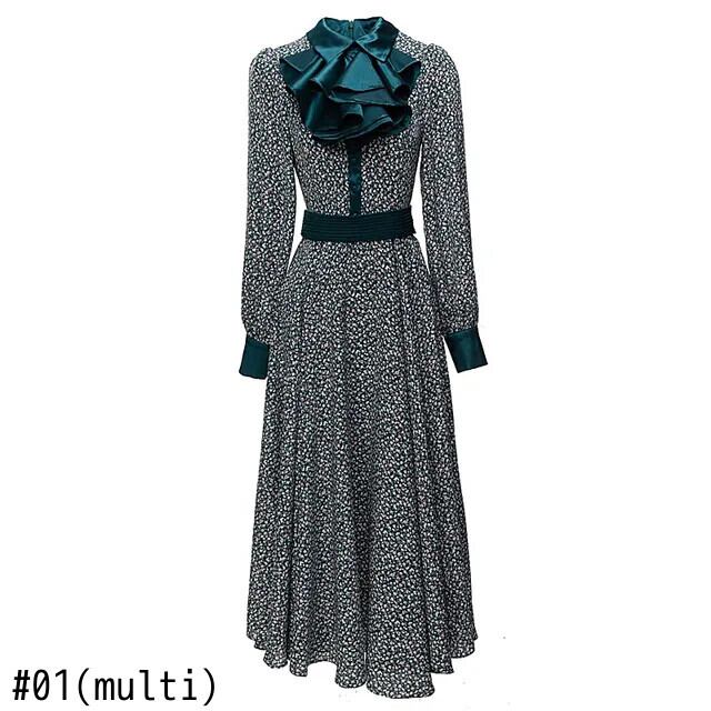 レディース春秋パーティープリント長袖セレブシックスリムミディドレス ロング スプリング 春物 オータム 秋物