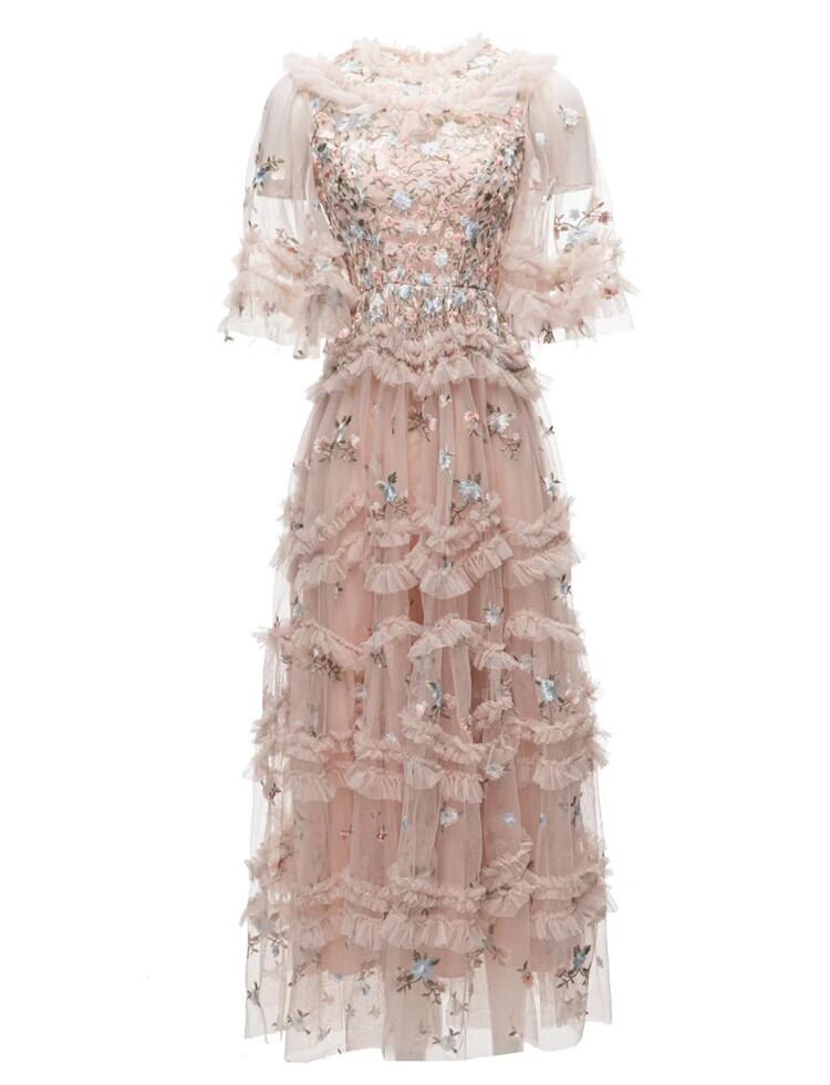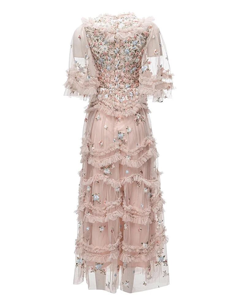 高級レディース春秋パーティー刺繍メッシュパゴダスリーブシックロングドレス レッド スプリング 春物 オータム 秋物