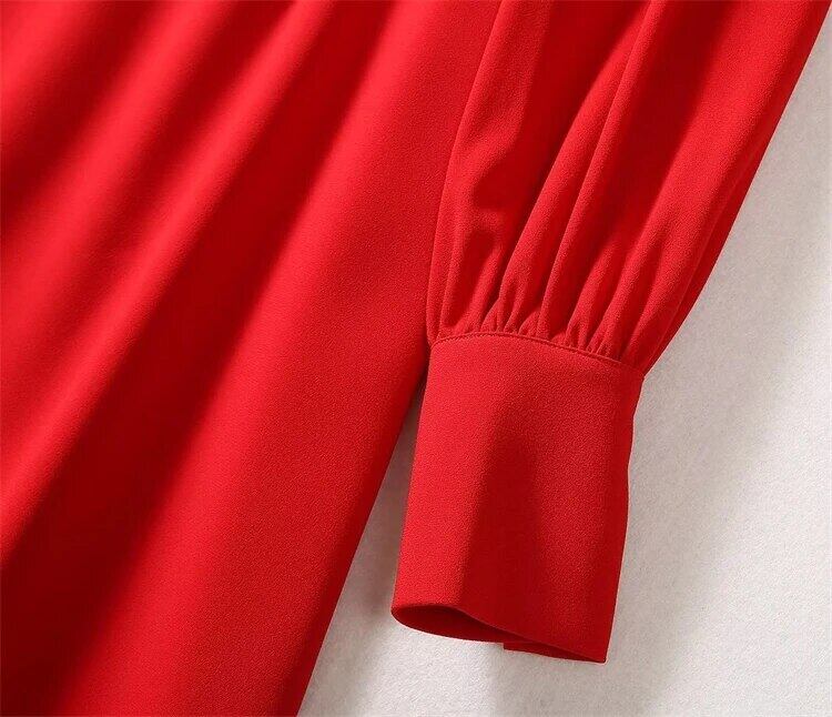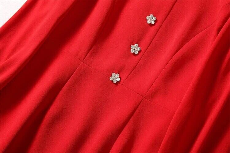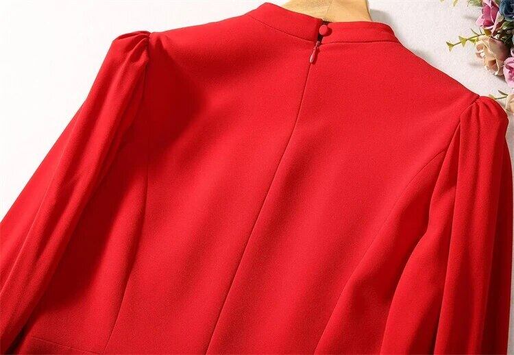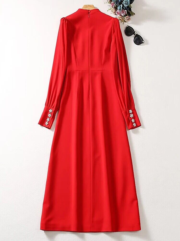 滑走路春秋パーティーレッドスリムセレブ甘い長袖ミディドレス ロング 大人ガーリー スウィート キュート カジュアル スプリング 春物 オータム 秋物