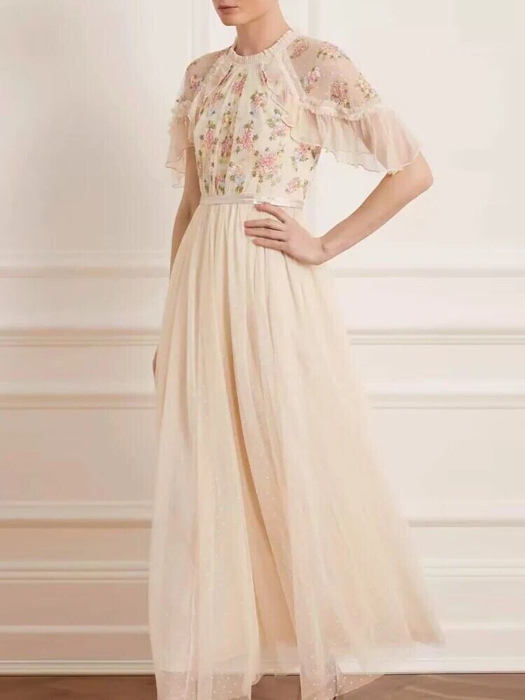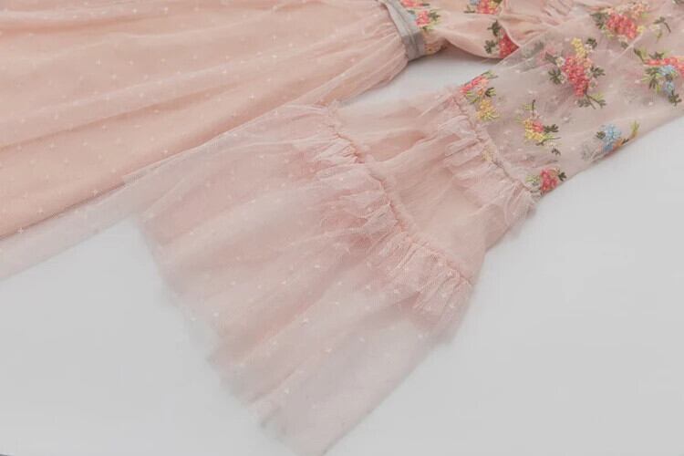 高級レディース秋冬パーティーピンクメッシュ刺繍ゴージャスでスイートシックロングドレス レッド 大人ガーリー スウィート キュート カジュアル オータム 秋物 ウィンター 冬物