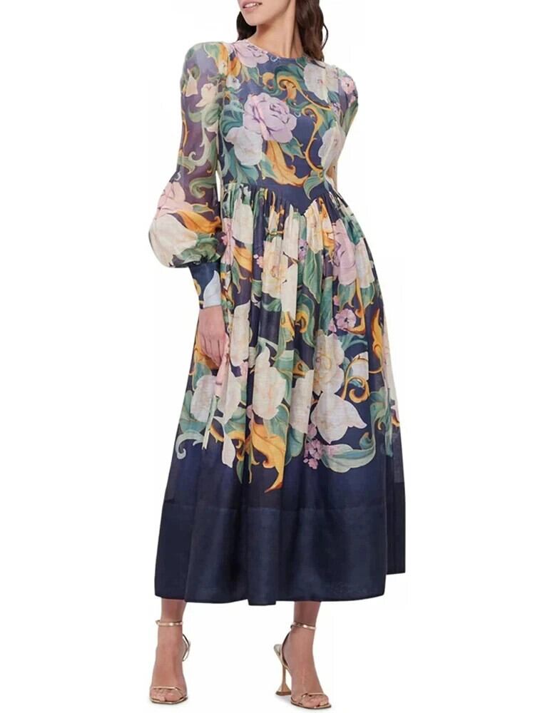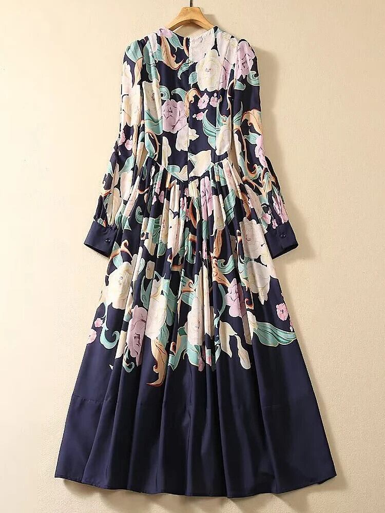 滑走路春秋パーティープリントボヘミアンプリーツシックロングドレス スプリング 春物 オータム 秋物