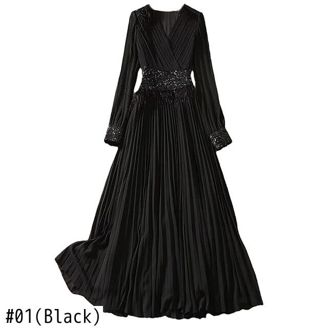 高級セクシー春秋パーティーパープルプリントプリーツシックロングドレスウォメ スプリング 春物 オータム 秋物