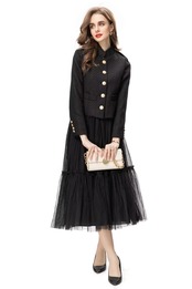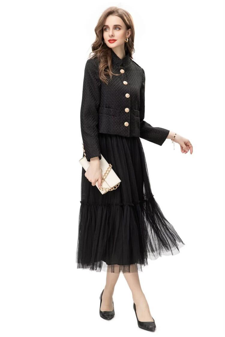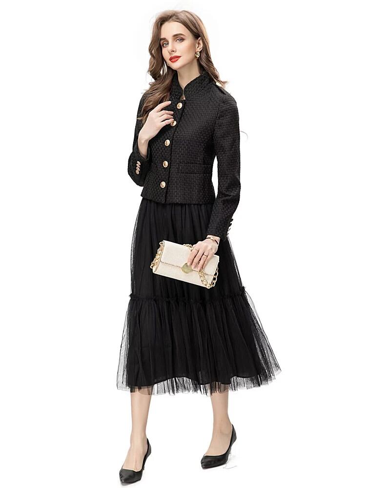 滑走路高級春秋シックコートメッシュハーフスカートブラックグレーパーティーオフィススリムレディースセット スプリング 春物 オータム 秋物 会社 学校 通勤や通学にも