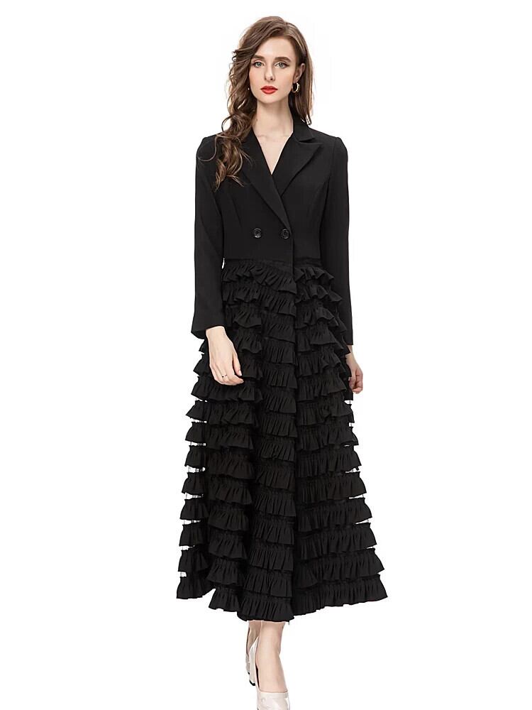 オーバーコート冬秋パーティーブラックケーキシック高級オフィス職場長袖ウインドブレーカー ロング レース オータム 秋物 ウィンター 冬物 会社 学校 通勤や通学にも