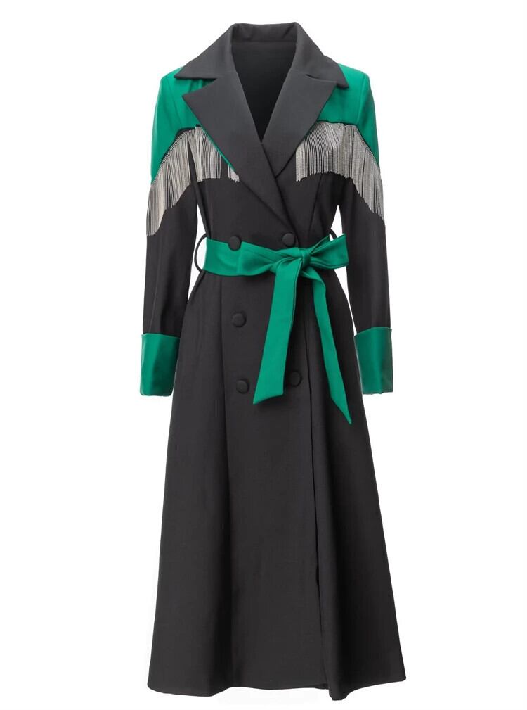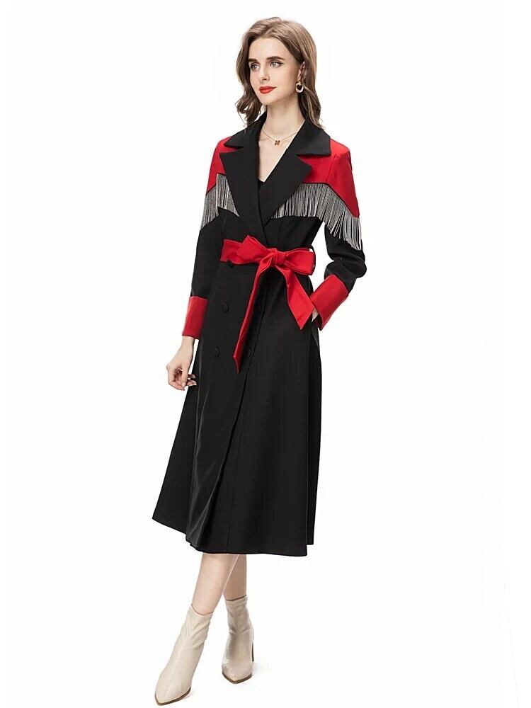 オーバーコート冬秋パーティー黒ボタン高級テルズビーズシック長袖コート ロング ブラック オータム 秋物 ウィンター 冬物