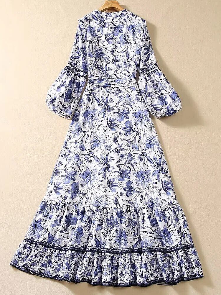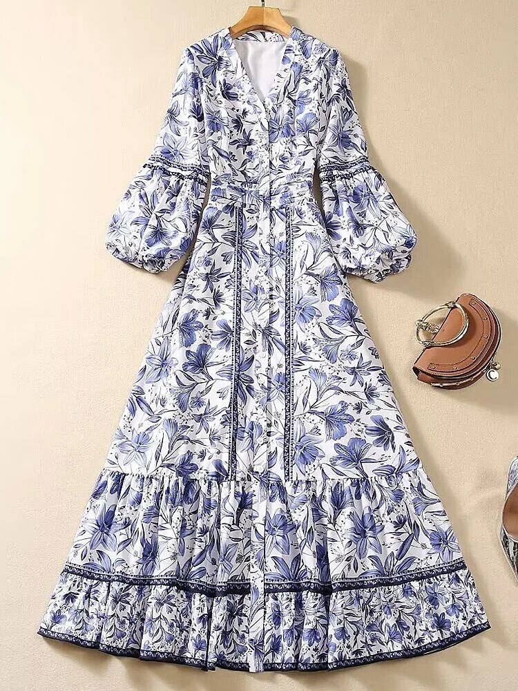 春秋パーティープリントボヘミアンボタンセクシーシックビーチバケーションスリム長袖ドレス ロング スプリング 春物 オータム 秋物