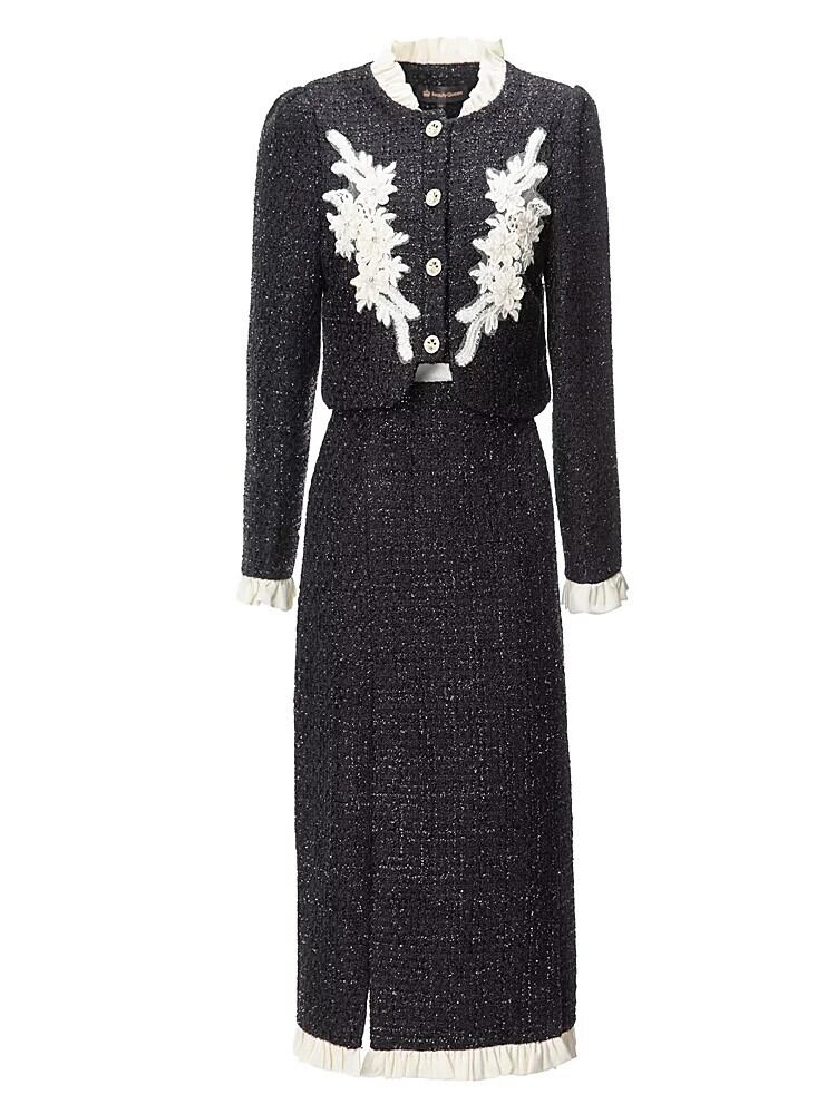 ツーピースセット 秋パーティー 刺繍ジャケット 高級 セクシー ペンシル ハーフスカート シック ゴージャス レディース セット レッド オータム 秋物