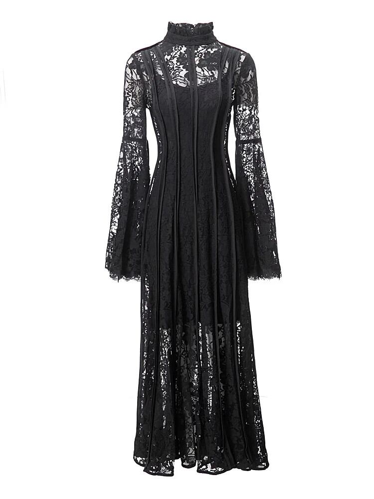 ロングドレス セクシー 春 パーティー 誕生日 レース くり抜き かわいい シック スイート フレアスリーブ 2点セット 大人ガーリー スウィート キュート カジュアル スプリング 春物