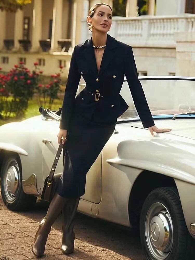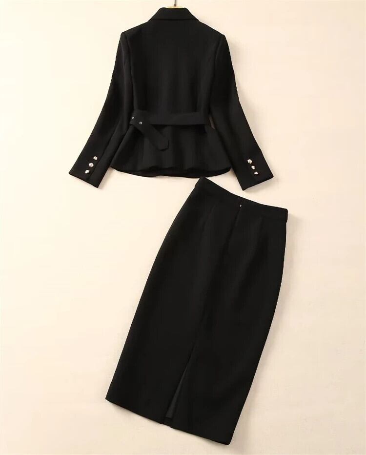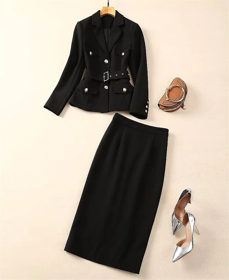 レディース セット 贅沢春かわいいパーティー ブラック ローズ レッド ジャケット トップ セクシー ペンシル ハーフ スカート オフィス 2 点セット スプリング 春物 会社 学校 通勤や通学にも