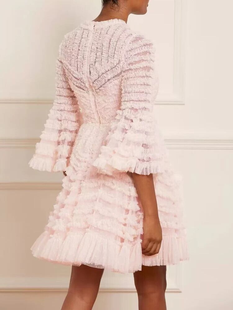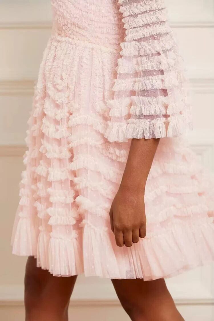 贅沢滑走路セクシー甘い春夏パーティーブラックピンクレッドメッシュかわいい日焼け止めミディドレス 大人ガーリー スウィート キュート カジュアル スプリング 春物 サマー 夏物