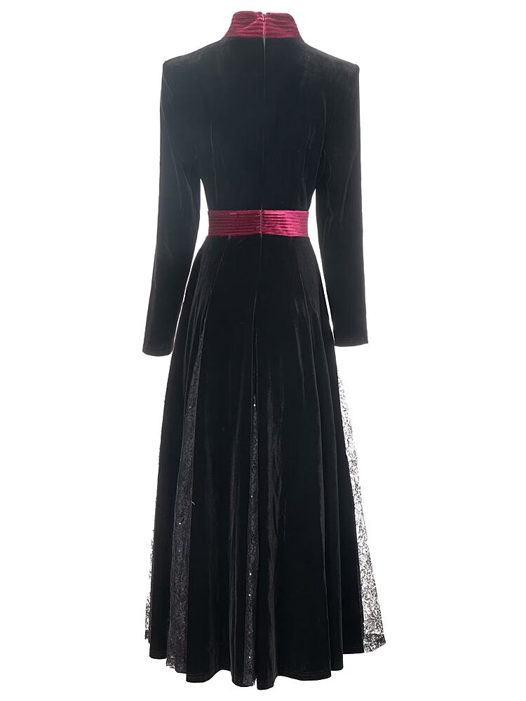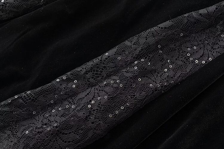 滑走路春秋パーティーブラックベルベットレースセクシースパンコールクリックプリティ長袖ドレス ロング スプリング 春物 オータム 秋物