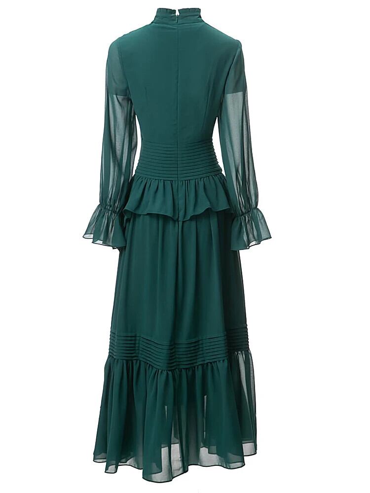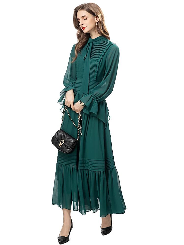春パーティーグリーン日焼け止め贅沢でシックかわいい長袖ドレス ロング スプリング 春物