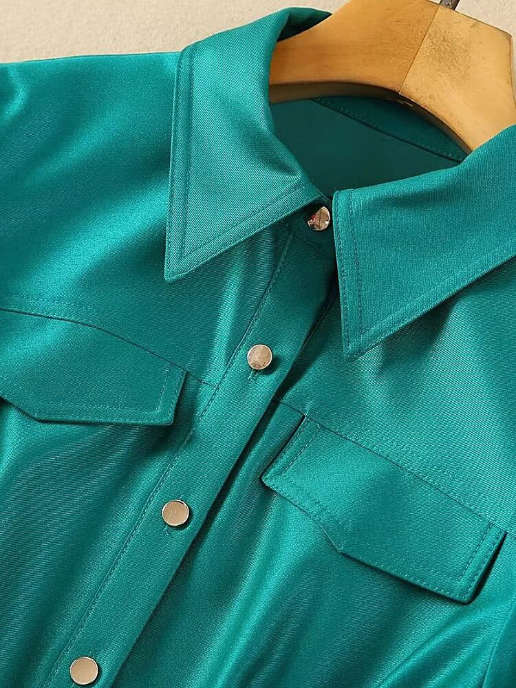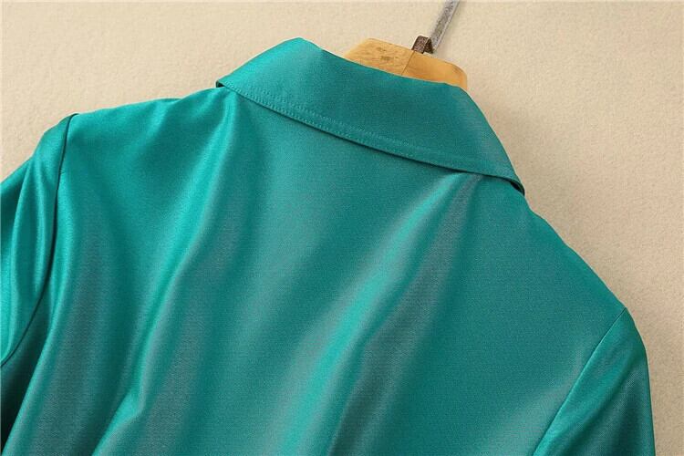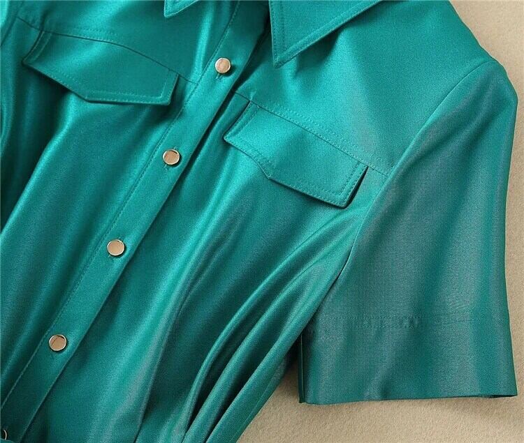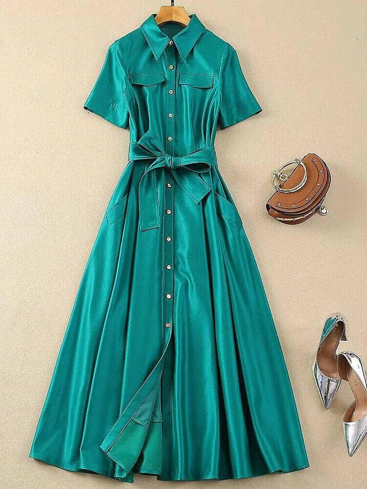 滑走路サマーパーティーグリーンボタンレースアップオフィスシックセレブスウィートプリティミディドレス 大人ガーリー キュート カジュアル 夏物 会社 学校 通勤や通学にも