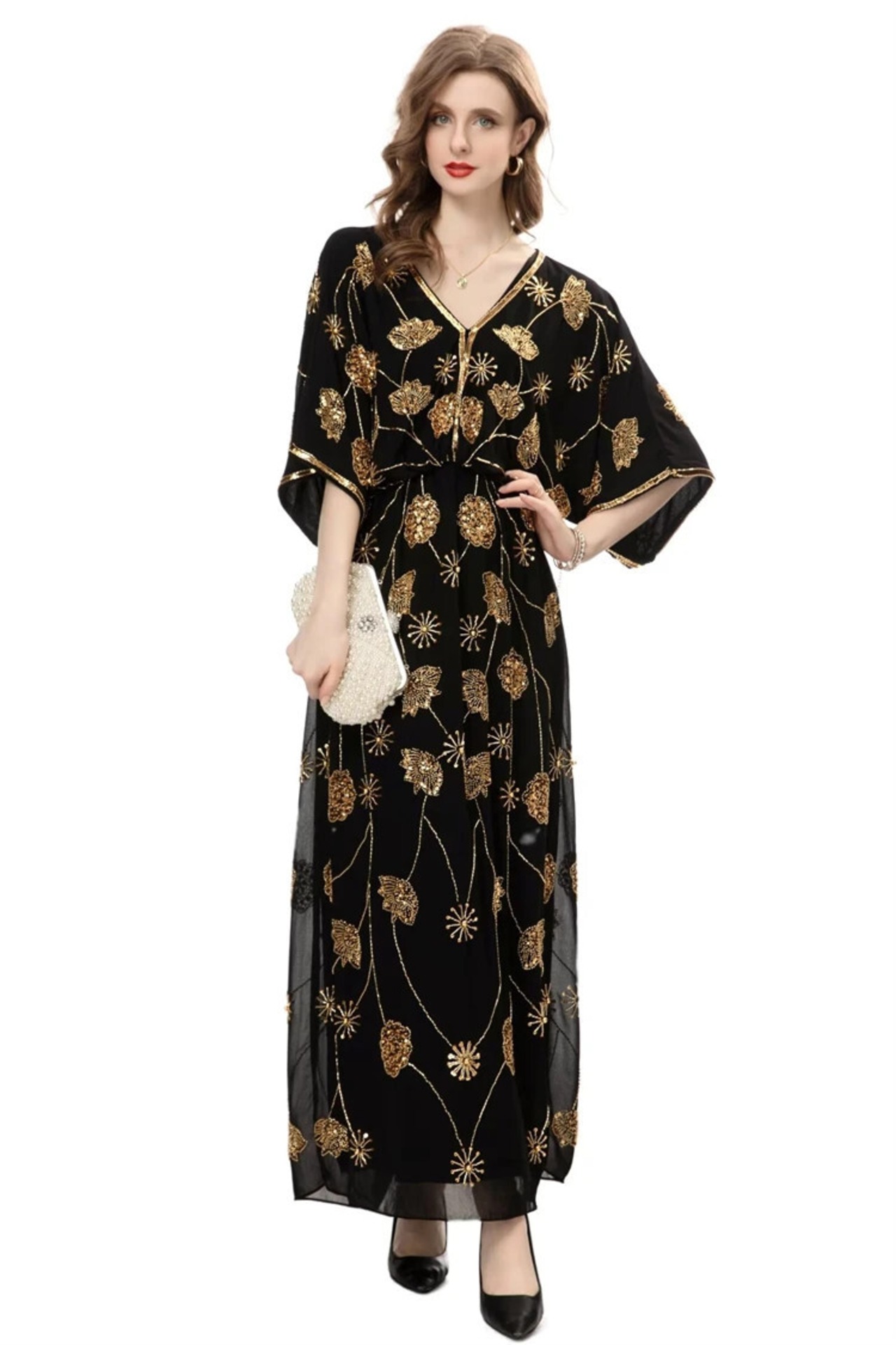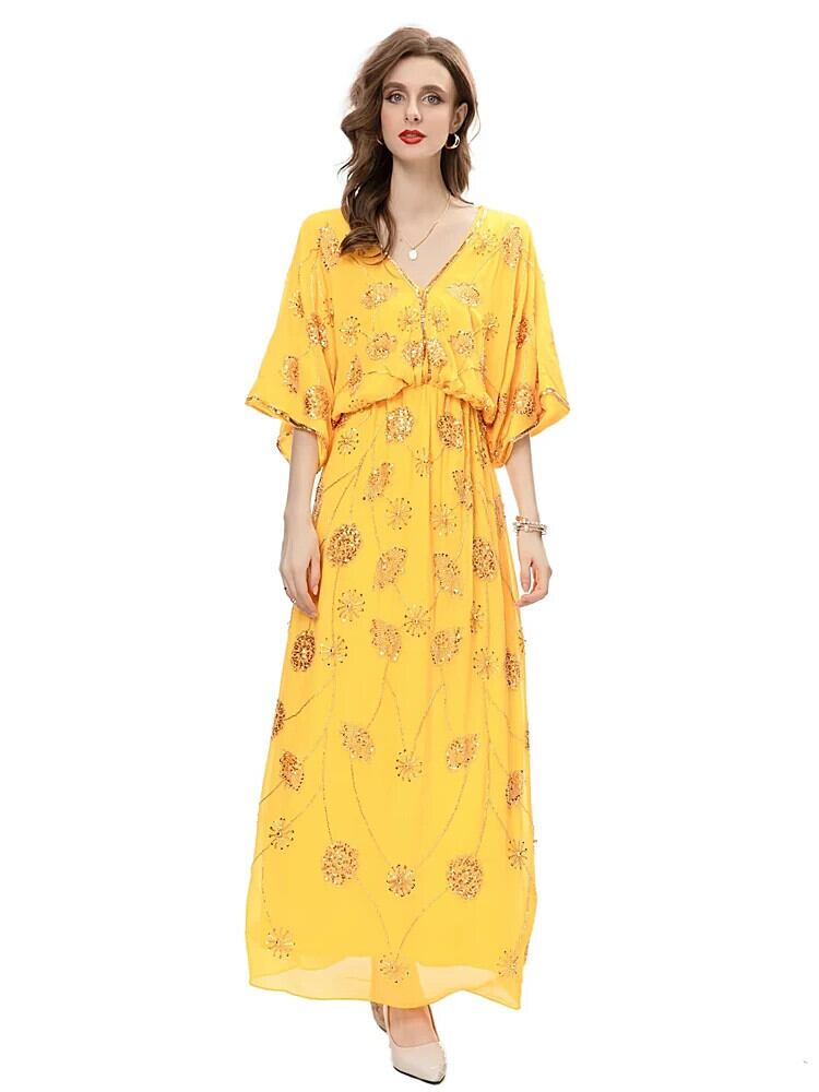 キャットウォーク春夏パーティーシフォンビーズルーズシック甘いゴージャスかりロングドレス 大人ガーリー スウィート キュート カジュアル スプリング 春物 サマー 夏物