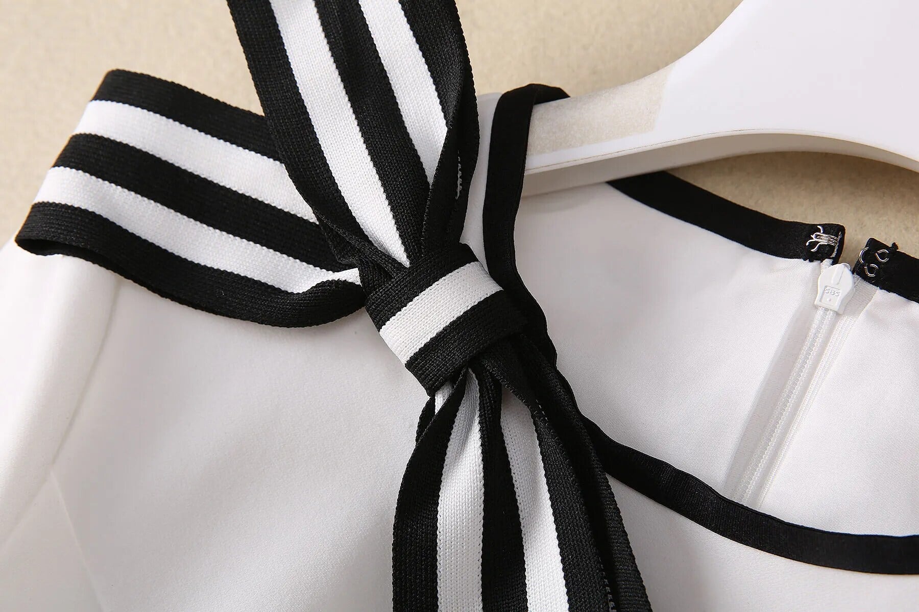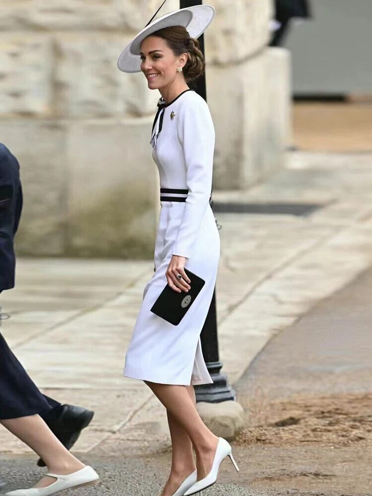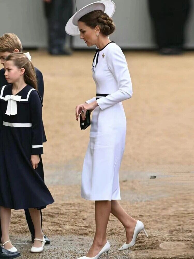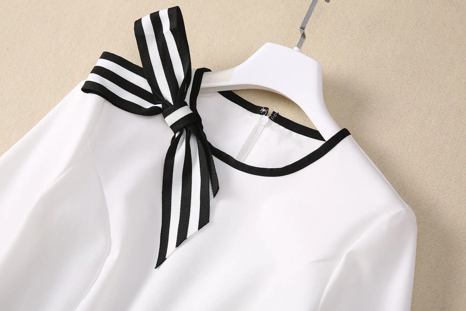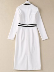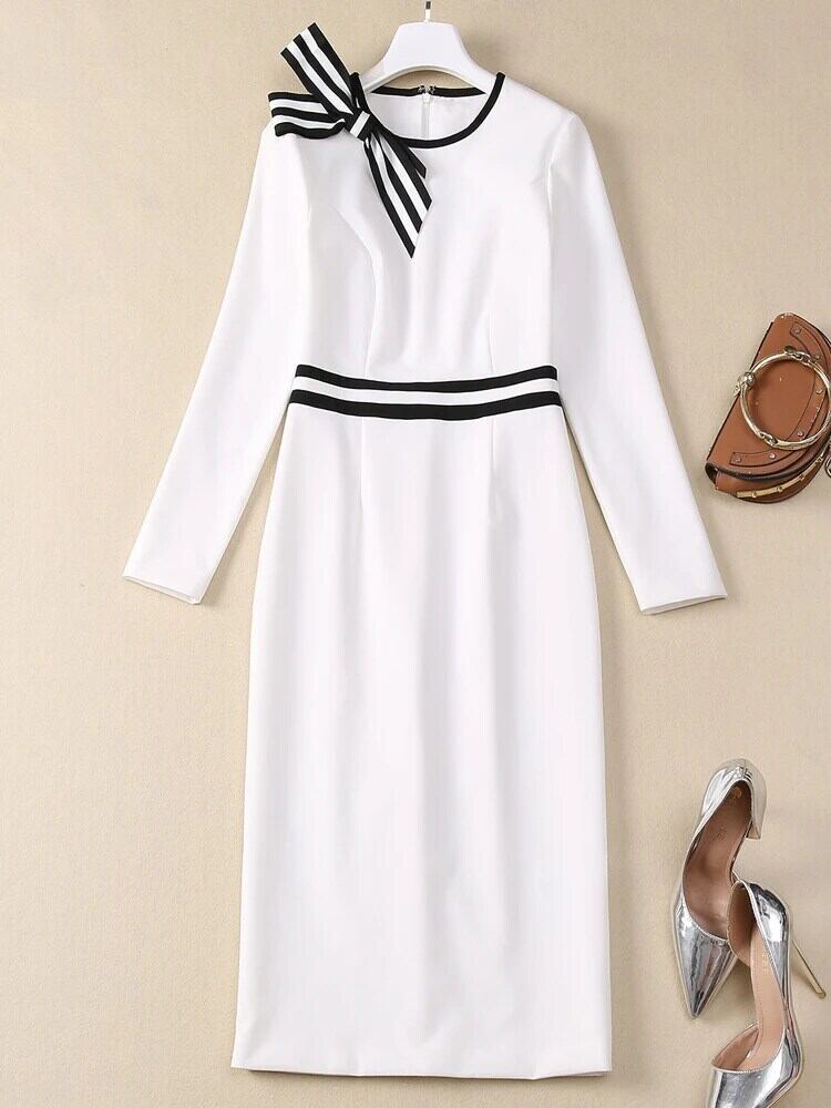 ケイト・ミドルトン キャットウォーク オータム パーティー セレブ スリム フィット ホワイト リボン プリティ スウィート ミディ ドレス 大人ガーリー キュート カジュアル 秋物